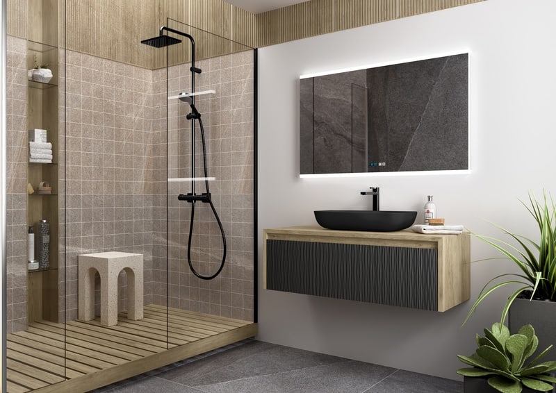 Renueva tu baño con nuestros muebles, mamparas, platos de ducha y grifería funcionales y elegantes. Diseños que combinan almacenamiento inteligente con materiales duraderos y de fácil mantenimiento.